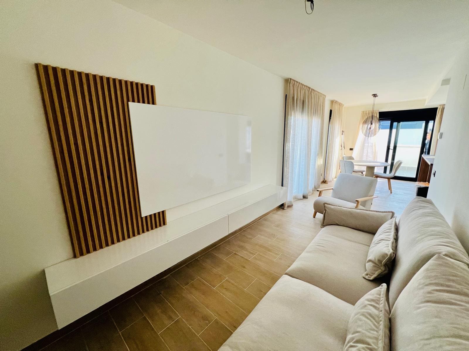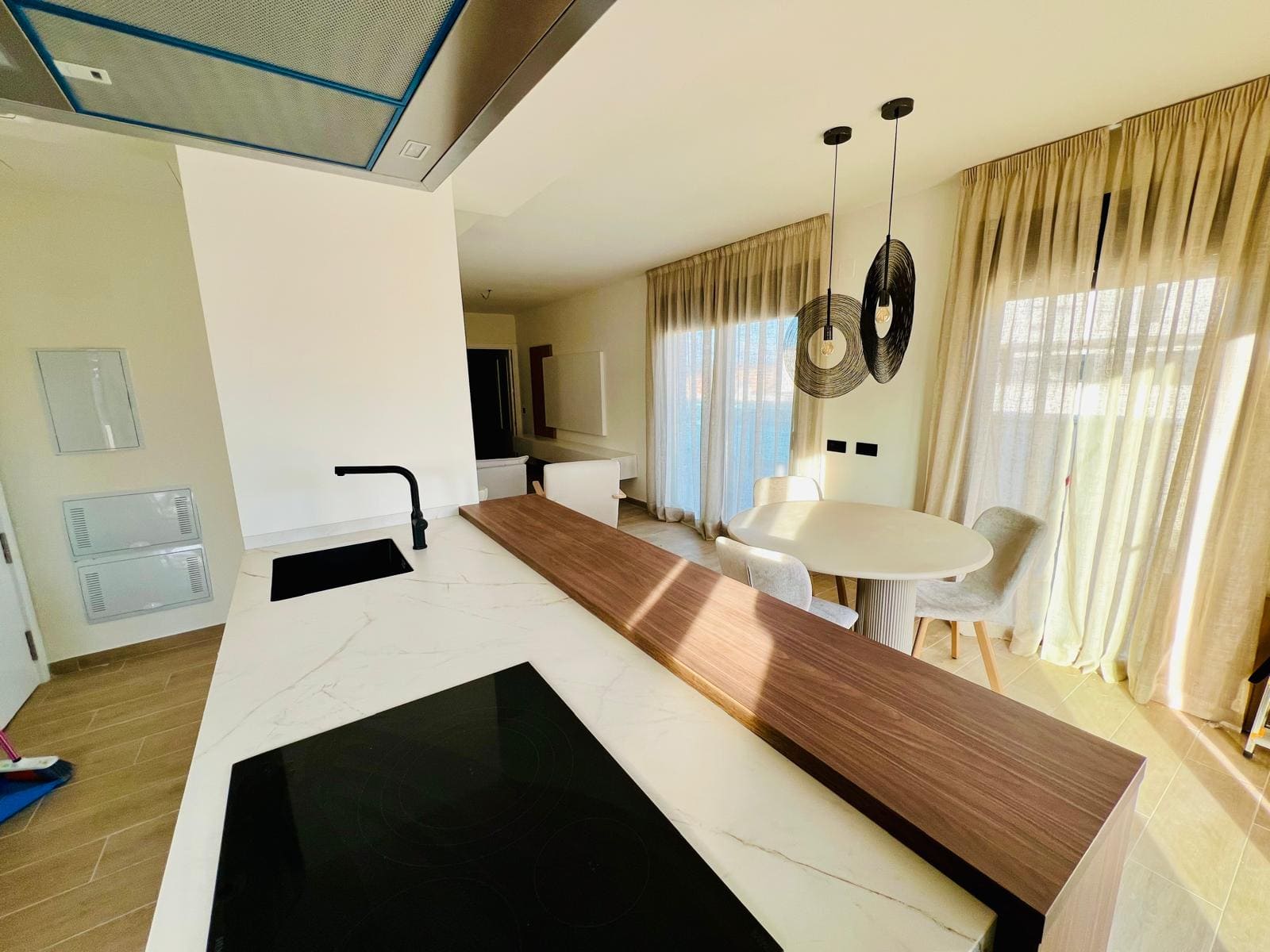 Este exclusivo ático de obra nueva destaca por su impresionante patio de 95 m², ideal para disfrutar del aire libre sin salir de casa. La vivienda ofrece una excelente distribución interior: un amplio salón comedor con salida directa al exterior, cocina moderna e independiente, tres dormitorios con armarios empotrados (el principal en suite) y dos baños completos.